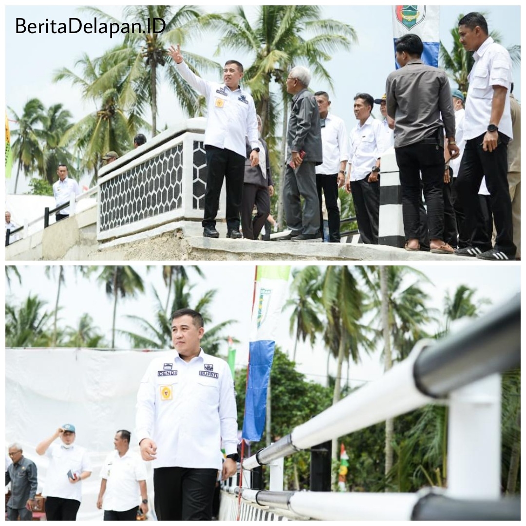BeritaDelapan.ID - Pesawaran, Bupati Pesawaran Dendi Ramadhona meresmikan jembatan Way Buah sebagai penghubung antar dusun di Desa Bunut Seberang Kecamatan Way Ratai, Rabu (8/11/23).